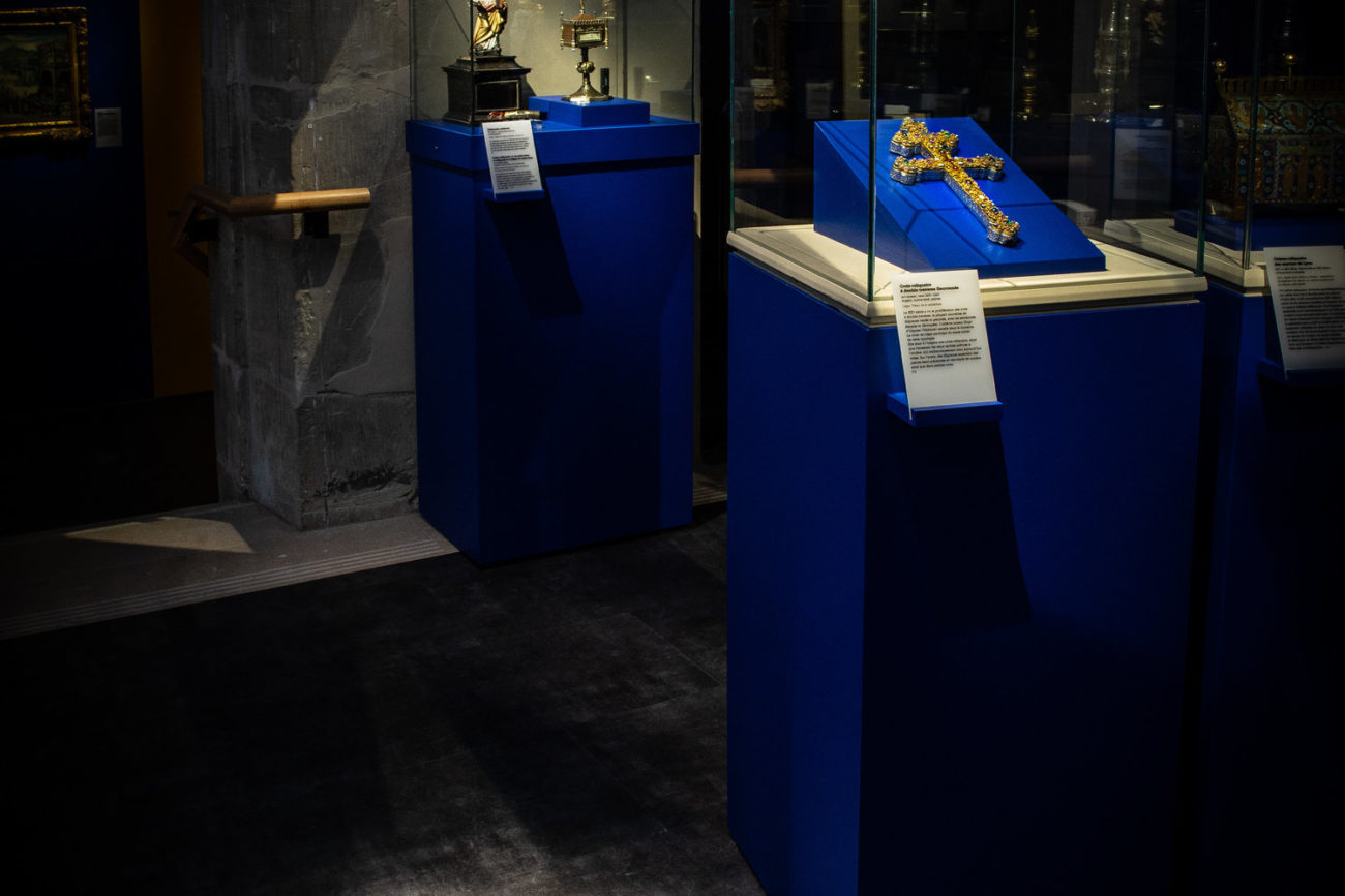 Dans un parcours semé d’étoiles et dans une scénographie scintillante, les visiteurs découvrent des reliquaires. En fin de visite, un dispositif gigapixel permet aux visiteurs de zoomer dans la tapisserie pour en découvrir les infimes détails et leur interprétation, tout en gardant un œil sur la tapisserie originale.
